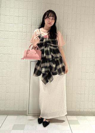 ピンク着用モデル身長:168cm、着用サイズ:F