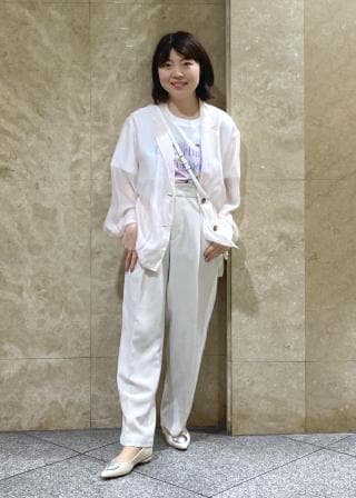 ボトムにはデニムはもちろん、ジャケットインなど、胸元が華やいだフォトTシャツは着映え効果あり!