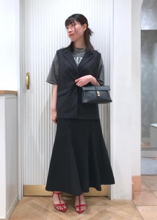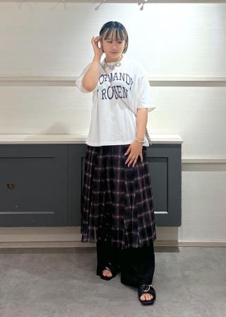 タンクニットワンピース(BVE15050)とレイヤードして、Tシャツの裾をアシンメトリーに結んだりしてニュアンスのある着こなしも◎