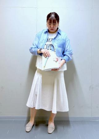 ボトムは、Iラインスカートやデニムリラックスパンツなどがおススメ!