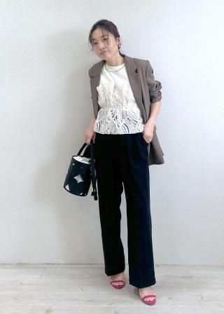 裾から出てるカットソー部分はボトムにインすると決まりやすい!