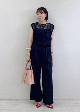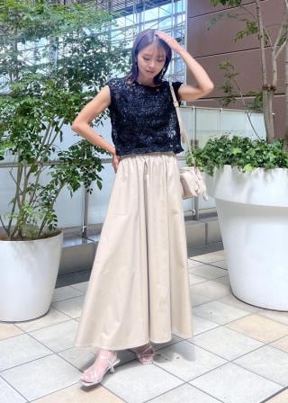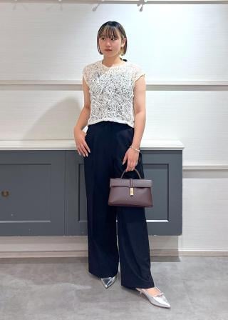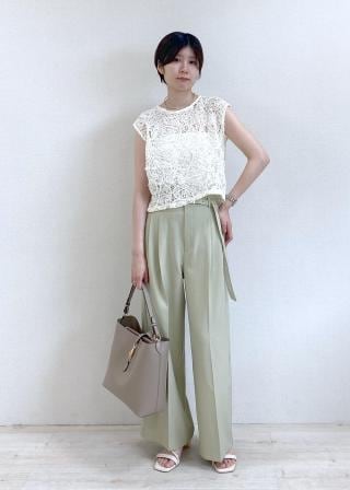 コードレースの素材を活かしたシンプルなノースリーブトップス。