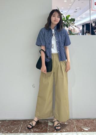 コットン系のパンツや、デニム等、Tシャツをインしてカジュアルなスタイリングがおススメ!