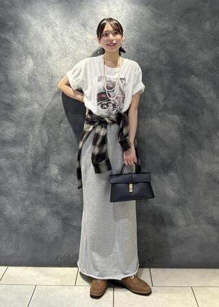 Tシャツの裾を折りたたんだり、アシンメトリーに結んだりして、変化を付けてデニムボトムなどに合わせるTシャツスタイリングがおすすめ!胸元にはネックレスアレンジが必須。