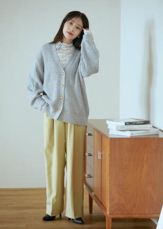 ・バックにスリット開きパール釦止めの仕様で着脱しやすく、フェミニンな印象に。