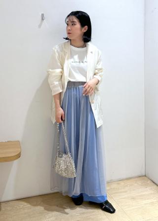 ・透け感の少ないシアー素材なのでスタイリングに悩まず着用頂けます。