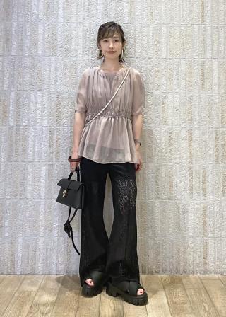 あえてインナーだけパンツにインして着用すると、シアー感を強調したスタイリングになりおすすめです。