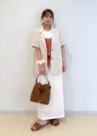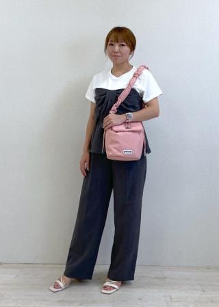 ペプラムシルエットなので、ワイドパンツやIラインスカートがオススメです。