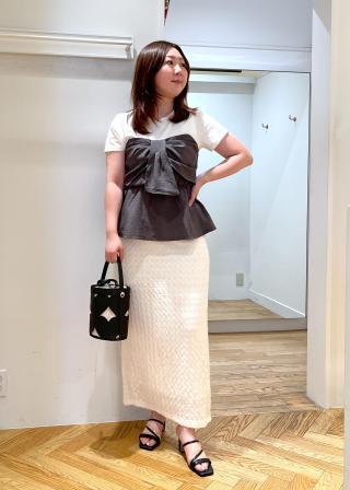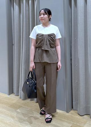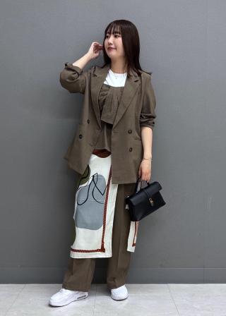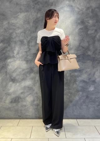 ペプラムシルエットなので、ワイドパンツやIラインスカートがオススメです。