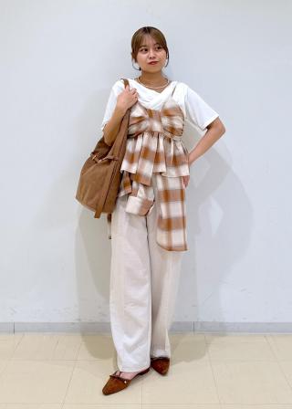 ホワイトメイン着用モデル身長:166cm、着用サイズ:F
