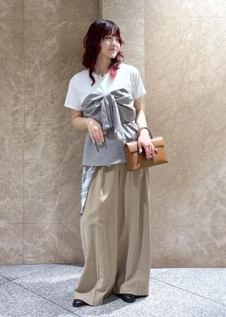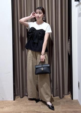 ビスチェ部分の素材は、同素材の美easyシリーズリネンライクのパンツやジャケットの展開もあるので、セットアップとしてのスタイリングが可能です。
