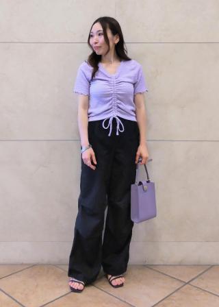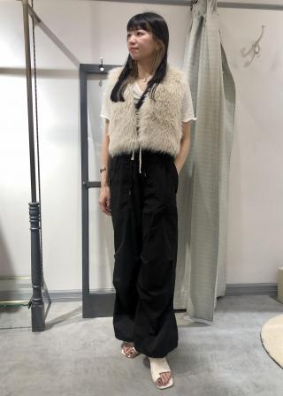 フロントの紐は調節可能なので、ボトムスによって短くしぼっても今年らしいですよ♪