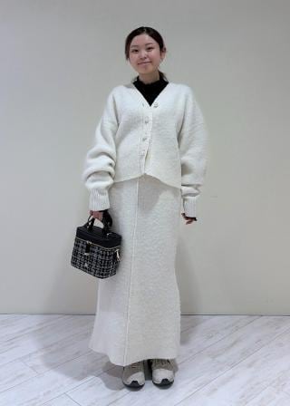 ジャケットやカーディガンのインナーに袖口クシュクシュをあえて出してニュアンス袖として使用するとレイヤード感あるスタイリングに。