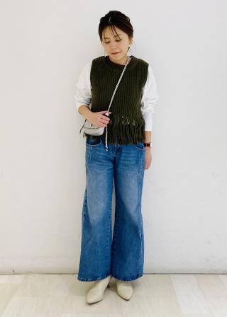 一枚ではもちろん、ジャケットやルーズニットのインナーなどにもコーディネートしやすいのでおすすめです。