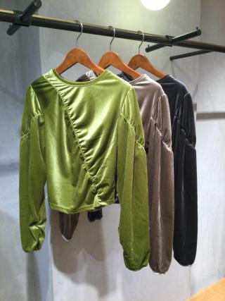 ベロアとギャザーデザインの掛け合わせがポイントな主役顔トップス!