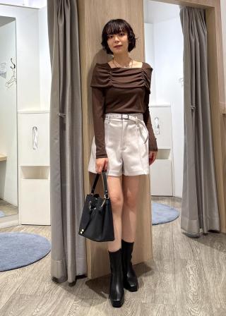 衿の縦シャーリングデザインがポイントの女らしいオフショルダートップス!