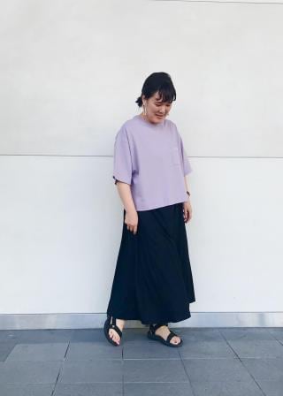 ゆったりとした袖まわりと、やや短めの丈感がバランス良くなっています。