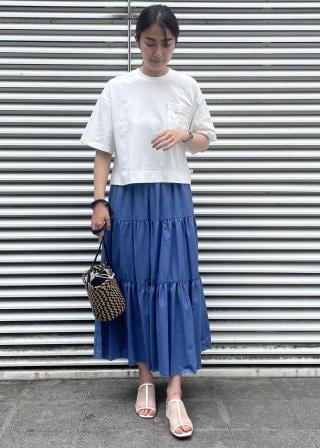 短めの丈感なのでハイウエストデニムが相性抜群。