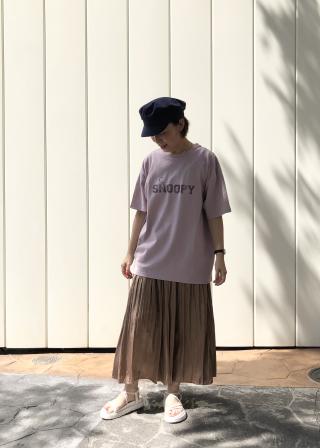 私が着ているピンクはテニスをしているスヌーピーがロゴの上にさりげなくいるので、あまり目立ちすぎず色んなシーンで着ていただけます♪