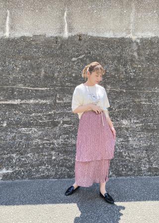 フレアマーメードスカート(BVC11180)などの柄スカート合わせで、女性らしくスタイリングしても可愛いです。