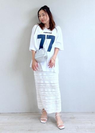 オーバーサイズのビッグTは今トレンドのゲームTデザインに落とし込み、スポーツ感をプラス。