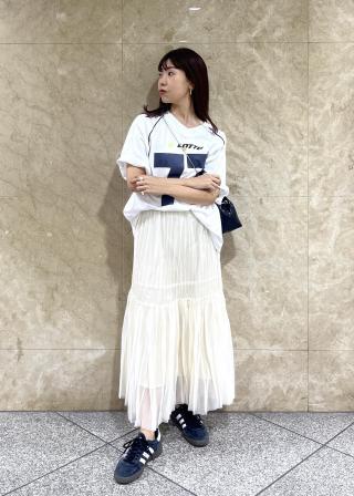 もちろんパンツとの相性◎。前インしてもゆるさを出してもかわいい着こなしになります。