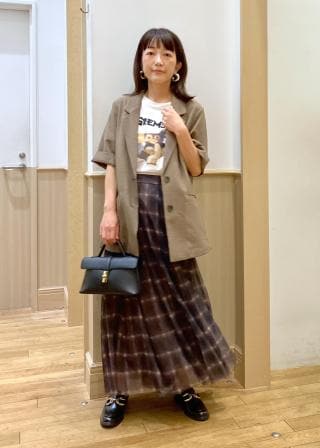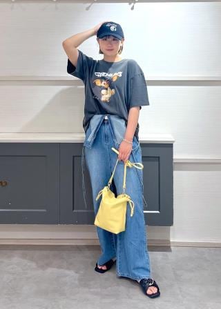 大きめのTシャツなのでコーディネートの幅が広がります。デニムとさらっと着てリラックススタイルも◎