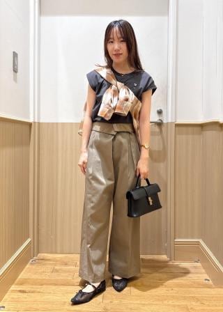 リネンライクのワイドパンツ(品番:BVS35100 チャコール(06)やオレンジ系(74)のカラー)とも合うカラー展開です。