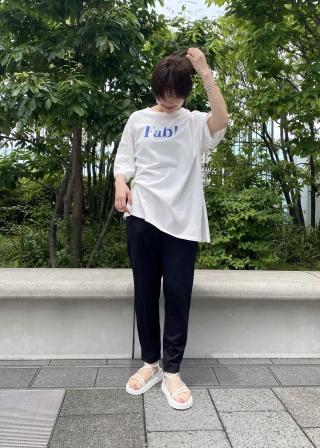 シンプルなオーバーサイズのTシャツなのでパンツにインでもアウトでも◎