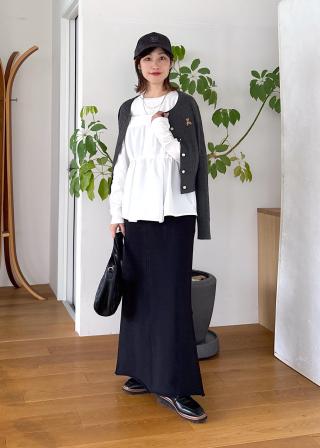 きれいめなテーパードパンツ合わせれば大人カジュアルですっきりバランスのいいコーデに仕上がります。