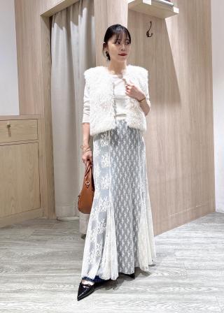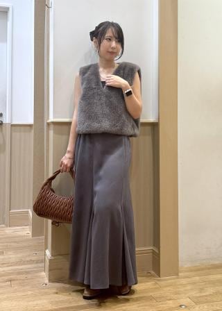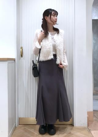 着膨れしがちなファーベストですが、骨盤にかかるくらいの丈感なのですっきり見えます!
