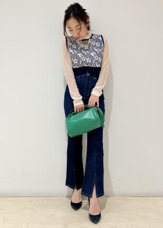 少しゆとりのあるサイズ感なので、ハリ感のあるブラウスやワンピースにも合わせやすいです!