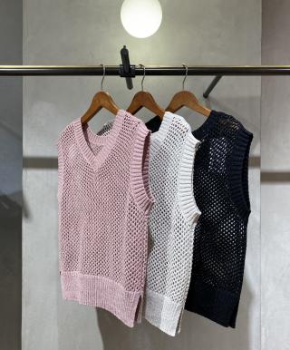 【前後2WAY】ラメメッシュニットべスト