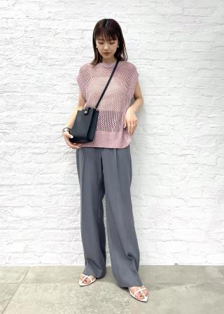 ・インナーに何を合わせるかによっても表情が変わるメッシュニットは今季トレンドでおすすめです。
