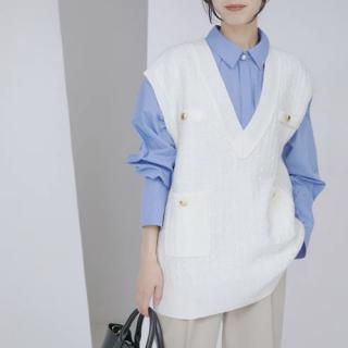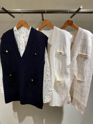 深めなVネックとニット生地ですが薄めなので、インナーはカジュアルからきれいめまで幅広く組み合わせしていただけます!