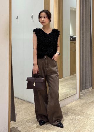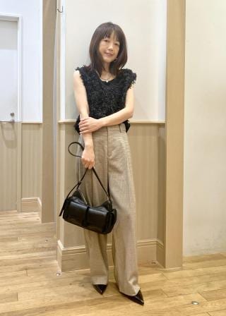 フリンジ部分は2素材使い華やかな印象に仕上げています。小さめのスパンコール入りで華やかさをさりげなく添えつつ、普段使いしやすい落ち着いた輝きが魅力。いつもの着こなしにレイヤードするだけで、こなれた印象に。前後2WAYで気分やコーディネートに合わせて変えて着用いただけます。