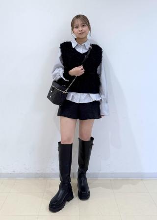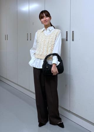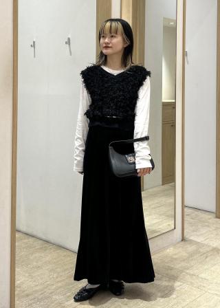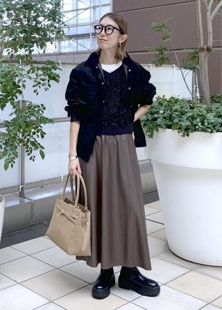 インナーをキャミソールにし合わせたり、Tシャツのレイヤードでカジュアルスタイルもおすすめです。またシャツ合わせも華やかになります。ベロアインナーとの合わせが好相性◎。