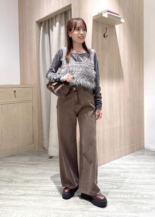 タートルの上から着てデニムやブラウンのベロアパンツに合わせたいです。