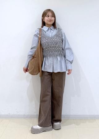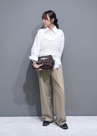 マンネリ化したシャツスタイルやロンTスタイル、レーストップススタイルなどのプラスワンアイテムとしてコーディネートして下さい。
