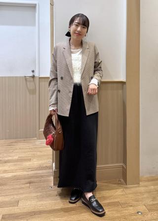 157cmでおへそにかかるくらいの着丈なので、ハイウエストボトムスとの合わせがバランスよく着られてオススメです!