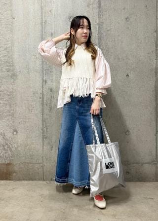 ブラウスやロンTとのレイヤードスタイルがおすすめ◎