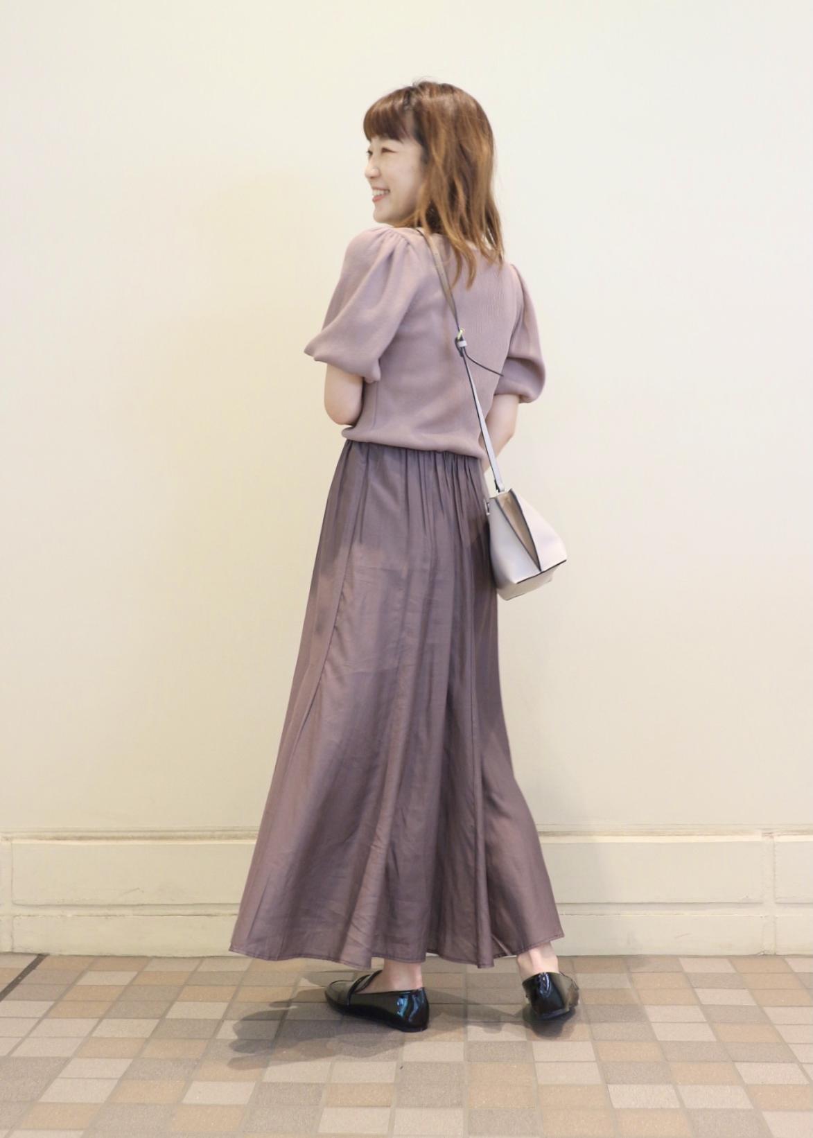 1枚で決まるドッキングデザインのワンピをシンプルに着てみました。 カラーが淡いトーンの微配色のドッキングなので落ち着いた雰囲気で上品見えします。 シューズはブラックのローファーで合わせで甘さを抑え バッグはワンピに合わせてくすみカラーでオシャレ感を意識しました。 きちんと感はあるのに着心地はリラックス感のある柔らかさで楽に着て頂けますよ◎