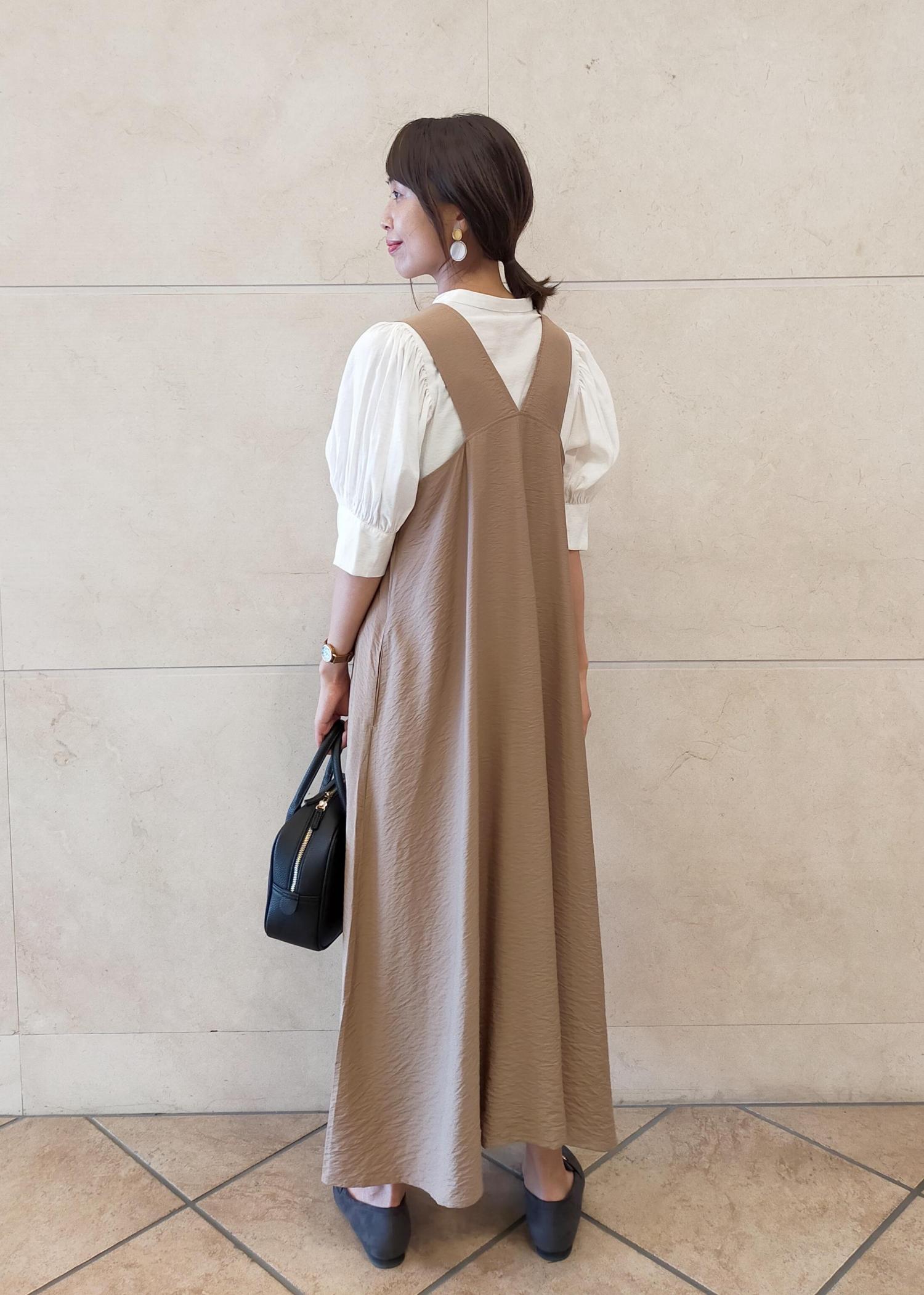 ジャンバースカートのさらさらした生地は身体にまとわり付かず、涼しく着用出来ます。
