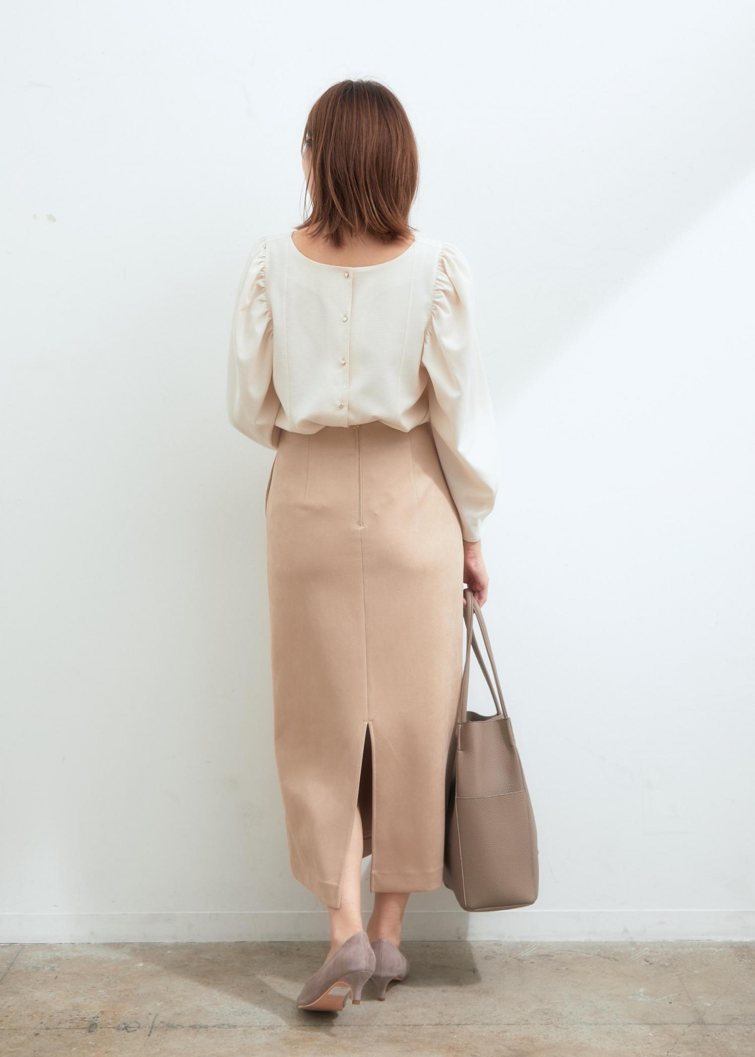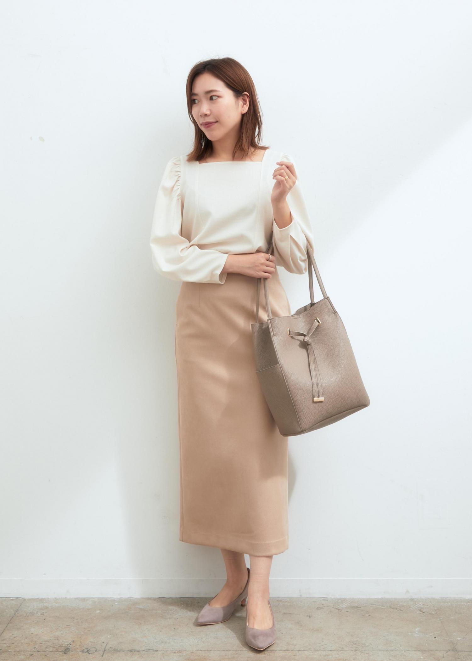 新作のブラウス×タイトスカート。 いつもはカジュアルに合わせるのが多いですが ワントーン風でまとめてきちんと感を出してみました◎ お出かけはもちろん、お仕事や学校行事など、、幅広く使えるアイテムたちです!