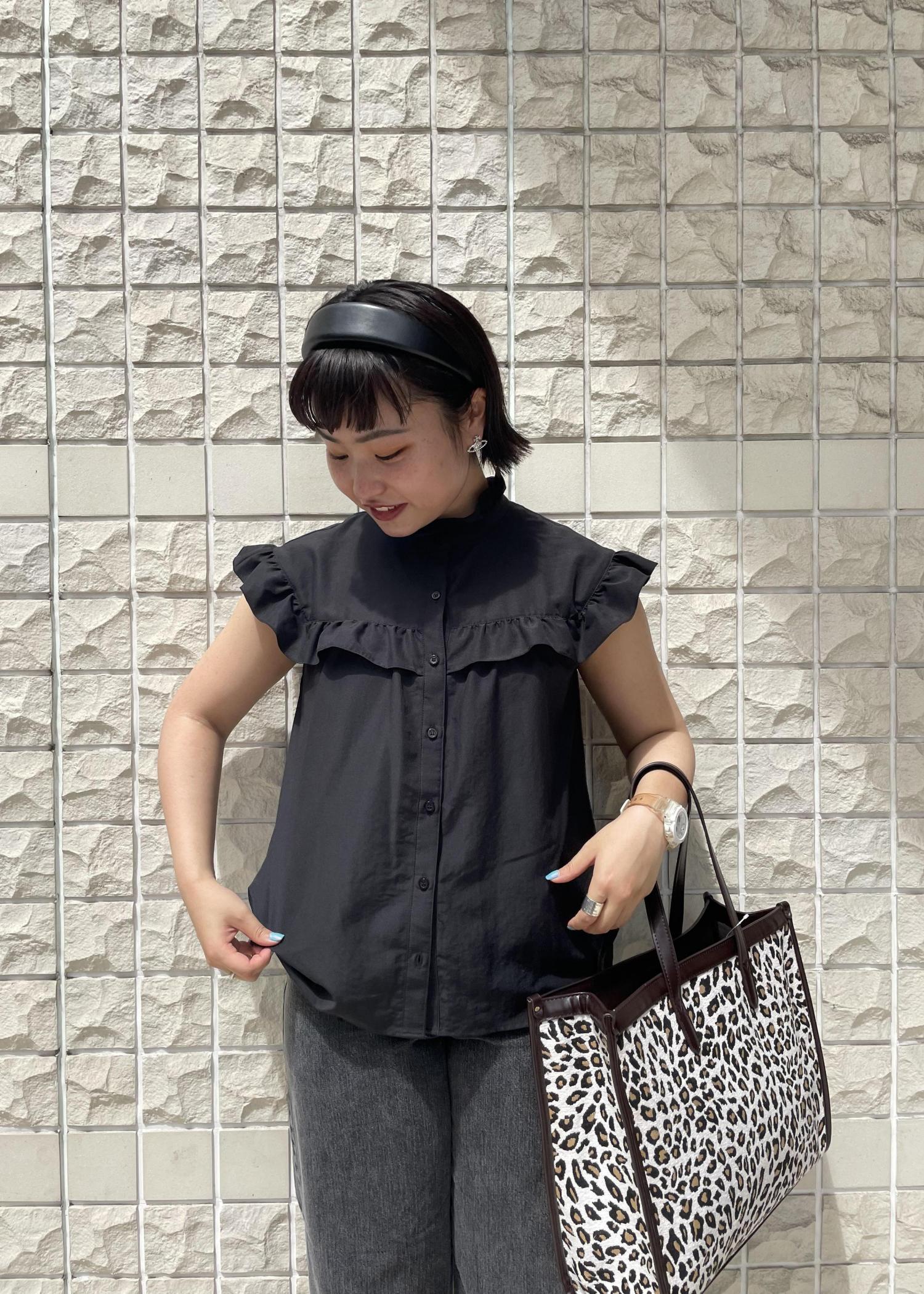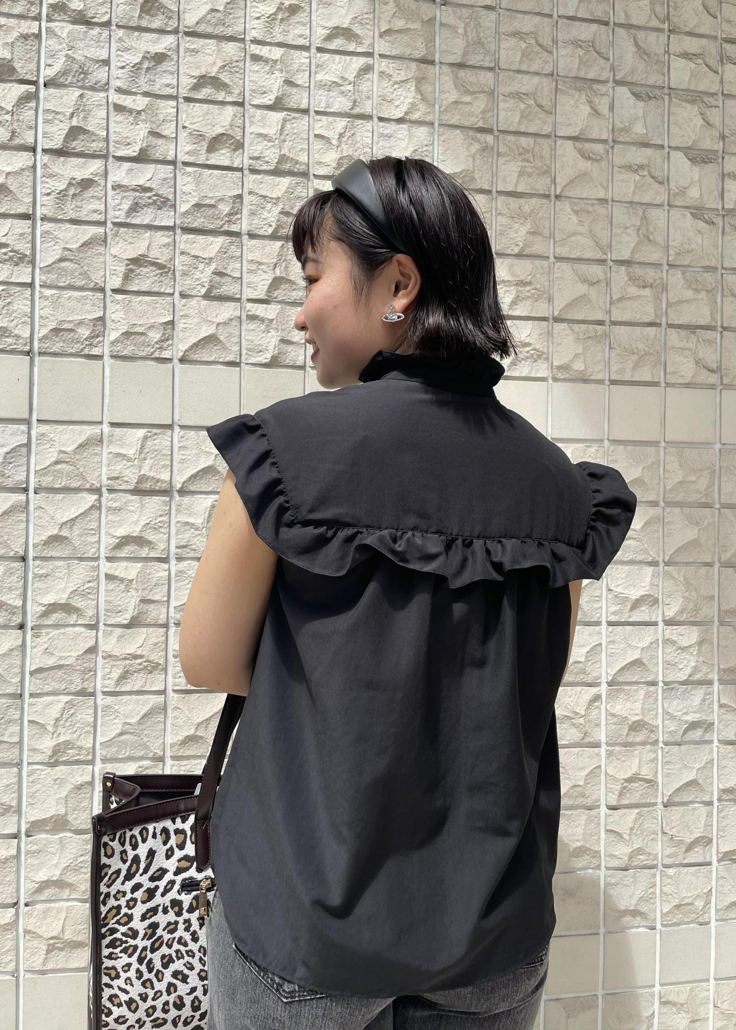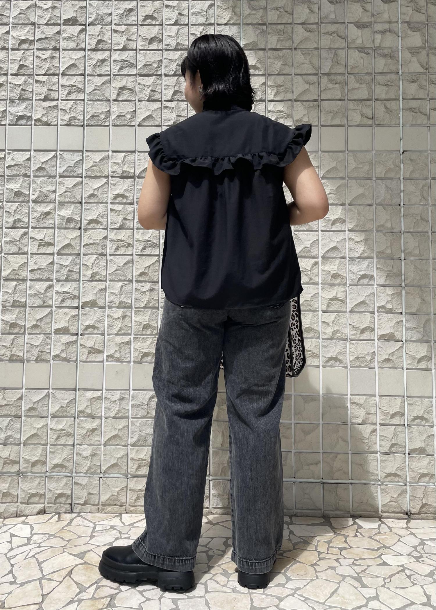全体的にブラックで統一しました! フリルのブラウスで女性らしさを少しプラス。 足元はブーツで秋を意識したコーディネートに(^○^)