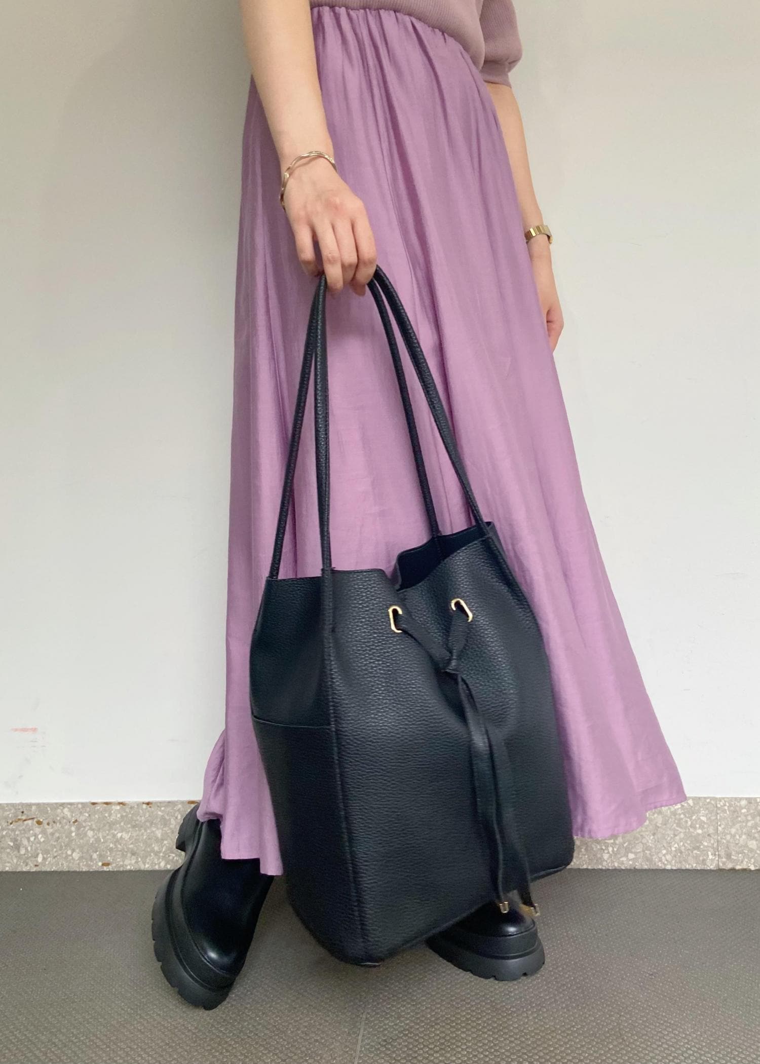 1枚で大人レディなコーデが完成する 異素材ドッキングワンピース。 ブラックの小物を合わせることで ワンピースの甘さを程よく中和してくれる 甘辛コーデに仕上がります♡ ボリューム感のあるサイドゴアブーツは、 歩きやすさとスタイルアップの 両方を叶えてくれる優秀アイテムです!