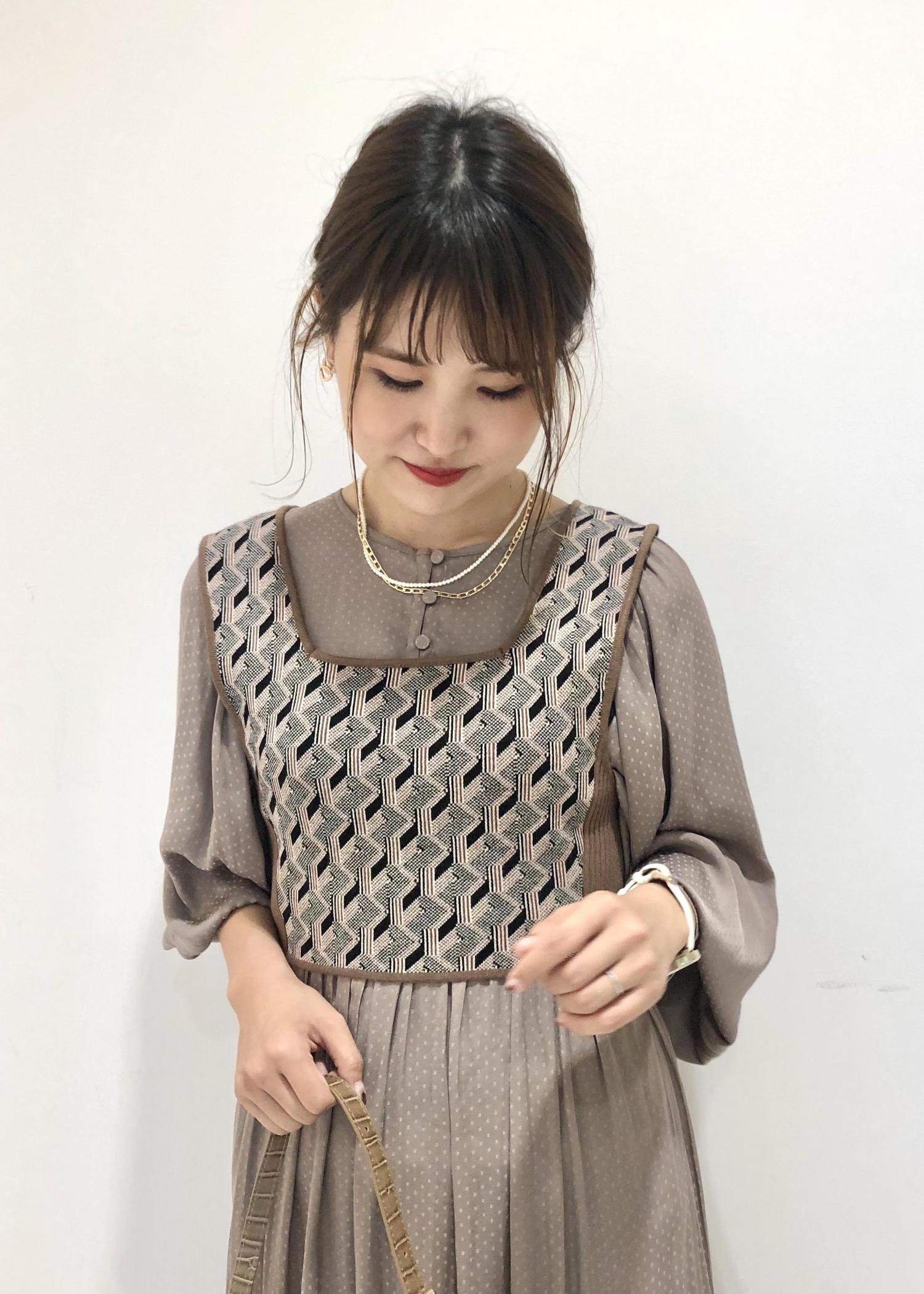 1枚でも様になるボリューム袖のワンピースですが、 ビスチェと合わせる事でぐっとお洒落な印象に。 周りと差をつけたい、そんな女子会などのシーンにオススメのコーディネートです。