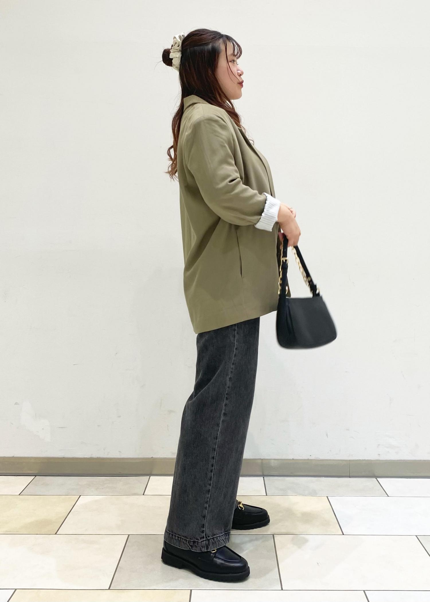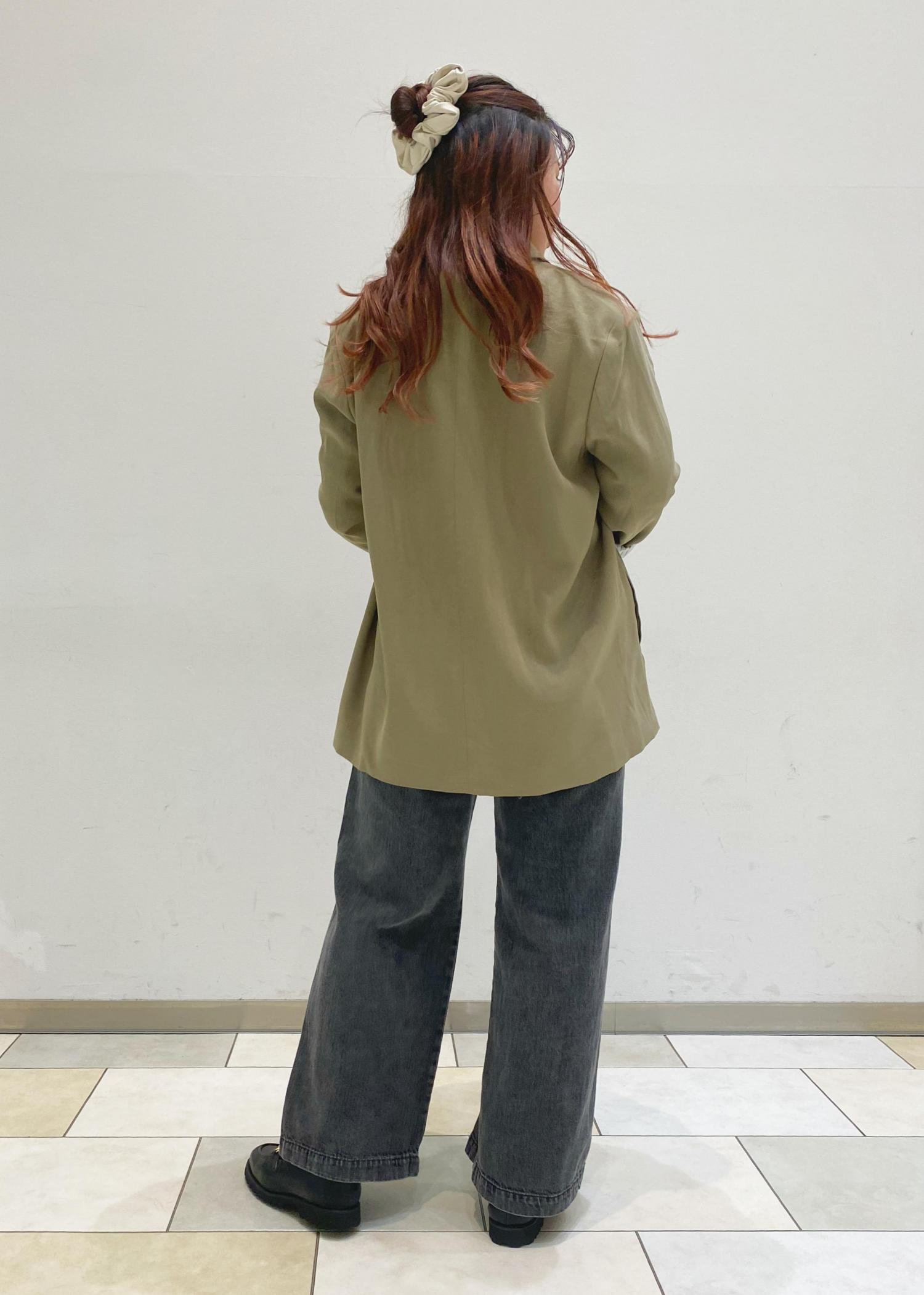 くすみグリーンとゆったりサイズ感が可愛いジャケットコーデです☺︎ 中はロンT×デニムの定番カジュアルな組み合わせですが、オールブラックにすることでジャケットの色味がよりコーデ映えします♪ 袖ロールアップすれば、抜け感もしっかり出ます◎ 女性らしい、大人カジュアルスタイルです!