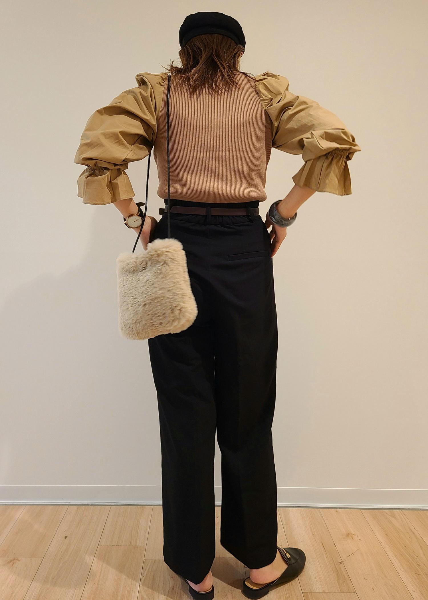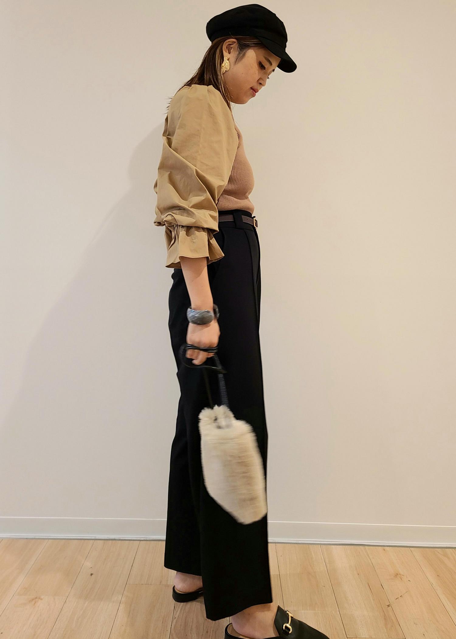 トップスを生かしたスタイリング☆ デザイン性のあるトップスを主役に、他アイテムはシンプルに、かつ色を統一してみました。 秋はやっぱりブラウンに惹かれます、、! 存在感のあるアイテムを取り入れるときは引き算をして他のアイテムをシンプルにするとバランスが取れますよ。 是非お試し下さい!