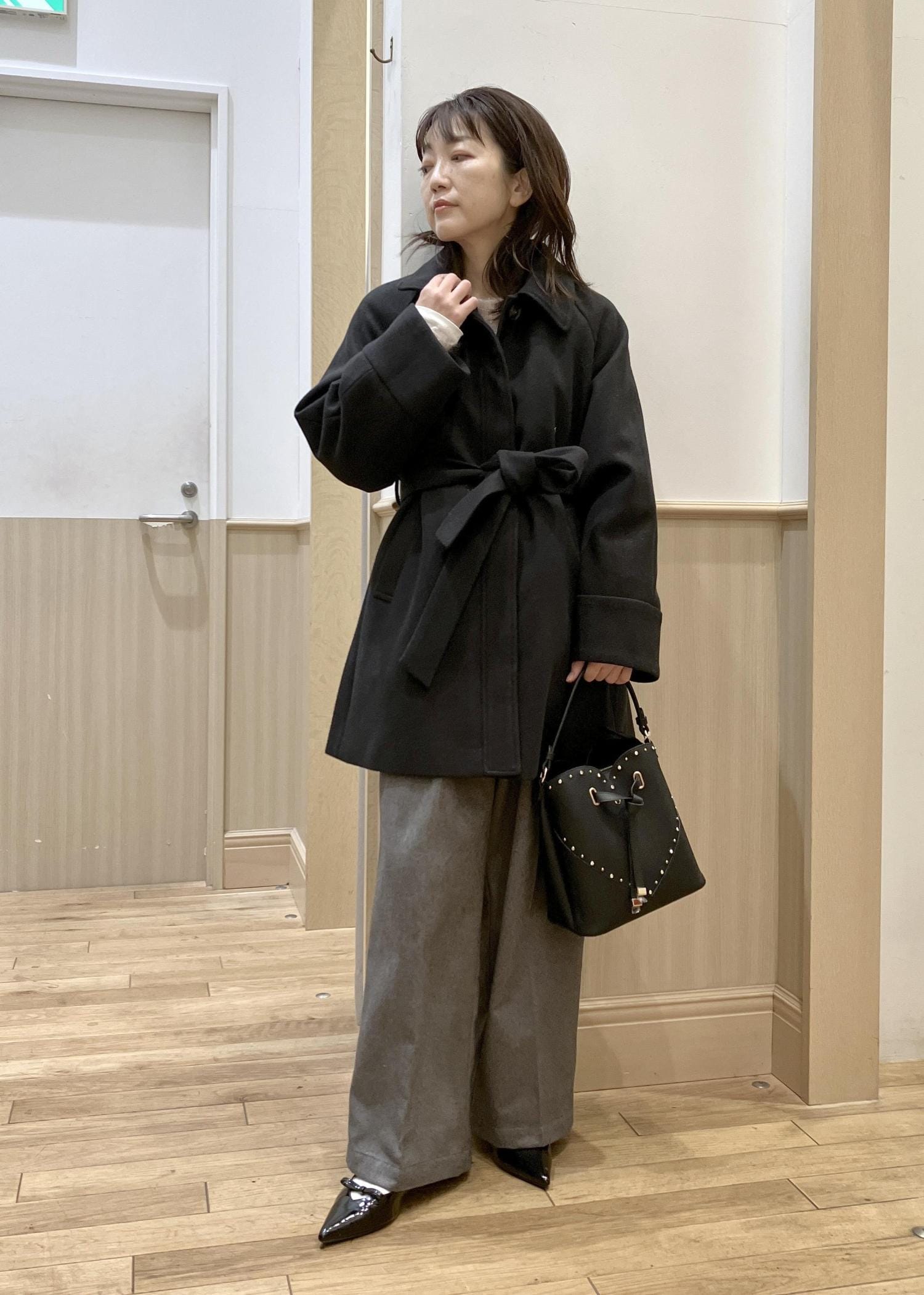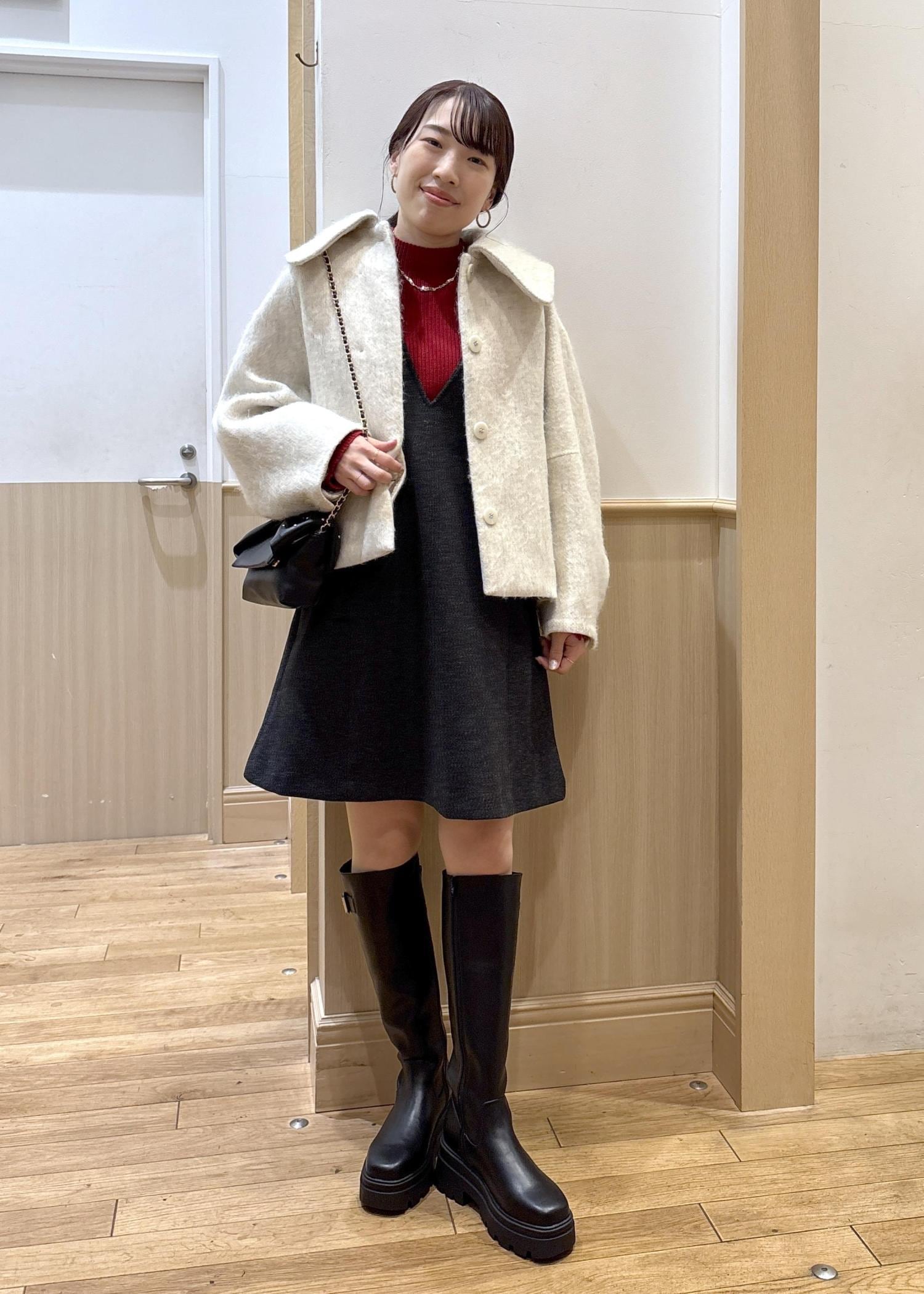 ジャケットできちんとした印象になるので、ファーバッグを合わせて女性らしいをプラスしてみました♪
